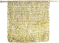 Repubblica 2005 (244 cm x h.130 cm) -50 Maglie - Filo Ø 10 mm. Tape-stry 2 con la pubblicità in cassetta 2006 (184 cm x h. 180 cm) - 30 maglie - Filo Ø 10 mm. Tape-stry 3 con il quotidiano la Repubblica 2006 (184 cm x h.200 cm) - 30 maglie - Filo Ø 10 mm. Tape-stry 4 con le Pagine Bianche 2006 (244 cm x h. 240 cm) - 50 maglie - Filo Ø 6 mm. (Riciclato - Firenze 2013) - Esposto nella Villa Medicea di Cerreto Guidi nel 2008 Tape-stry 5 con la pubblicità blu dei quotidiani 2006 (244 cm x h.160 cm) - 46 maglie. Filo Ø 7 mm. Tape-stry 6 con la pubblicità rossa dei quotidiani 2007 (244 cm x 160 cm) - 42 maglie. Filo Ø 6 mm. Tape-stry 7 con la pubblicità gialla dei quotidiani 2007 (244 cm x 130) 46 maglie. Filo Ø 5 mm. Tape-stry 8 con la pubblicità nera dei quotidiani 2007 (244 cm x h.120 cm) - 44 maglie. Filo Ø 7mm. Tape-stry 9 con la rivista Il Venerdì de la Repubblica 2008 (244 cm x h.70cm) 50 maglie. Filo Ø 8 mm. Tape-stry 10 con il quotidiano ItaliaOggi 2008 (244 cm x 240 cm) 60 maglie - Filo Ø 7 mm. (Riciclato - Firenze 2013) - Esposto nel 2008 alla Biennale Internazionale della Carta di Appeldoorn (Olanda) - e nel 2010 al "Blue Star Contemporary Art Center" di S. Antonio nel Texas Tape-stry 11 con il quotidiano Il Sole 24 ORE 2008 (244 cm x h.240) cm 50 maglie. Filo Ø 6 mm (paritc.) - (Riciclato - Firenze 2013). Esposto a Palazzo Pretorio di Certaldo nel 2009 Tape-stry 12 con il quotidiano bianco 2008 (cm 244 x in progress ) Tape-stry 13 con le Pagine Bianche 2009 (122,5 cm long x h.70 cm) 28 maglie. Filo Ø 7 mm (Riciclato - Firenze 2013) Tape-stry 14 con il quotidiano Corriere della Sera 2009 (122,5 cm long x h.70 cm) 28 maglie. Filo Ø 7 mm Tape-stry 15 con la pubblicità verde dei quotidiani 2009 - 50 maglie. Filo Ø 8 mm - Lungo 244 cm Tape-stry 16 con il quotidiano il Firenze 2009 - 50 maglie. Filo Ø 10 mm (Riciclato - Firenze 2012) Tape-stry 17 con il quotidiano La Gazzetta dello sport 2009 - Maglie 36 - h. 64 cm - lungo 122,5 cm Tape-stry 18 con il quotidiano La Voce di Romagna - Sport 2009 - Maglie 32 - h. 64 cm - lungo 122,5 cm Tepe-stry 19 con il quotidiano il Resto del Carlino 2009 - Maglie 30 - h. 66 cm - lungo 122,5 cm Tape-stry 20 con il quotidiano Corriere della Sera 2011- Maglie 40 (due rettangoli con maglie dritte e due a rovescio) - Esposto alla Terza Biennale di Lodi (Trasformato nel 2017 in Tape-srty 22) Tape-stry 21 con il quotidiano la Repubblica 2012 - Maglie 40 - Filo Ø 2 cm - Lungo 4 m Tape-stry 22 con il quotidiano Corriere della Sera 2017 - Maglie 74 - Realizzato con maglie larghe 30 cm circa. Tape-stry 23 con il quotidiano La Gazzetta dello sport. Realizzato nel 2023 in occasione del Giro d'Italia a Lucca |
